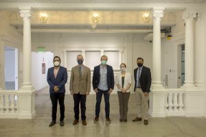 El rector de la Universidad de las Artes, doctor William Herrera, recibió el miércoles 3 de marzo de 2021 al cónsul general de Estados Unidos, Brian Quigley, con quien mantuvo una reunión y recorrió las instalaciones del edificio patrimonial El Telégrafo, donde se encuentran ubicadas varias áreas administrativas y espacios académicos de la UArtes.