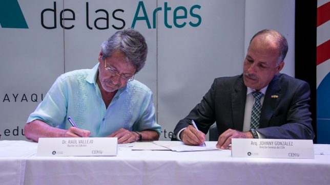 La suscripción del convenio la hicieron, por parte de la UArtes, el doctor Raúl Vallejo, presidente de la Comisión Gestora y rector subrogante; y por parte del CEN, el Arq. Johnny González, su director General.