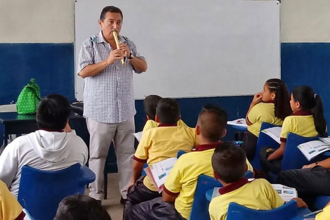 Para las niñas, los niños y adolescentes que estudian en la Unidad Educativa Fiscal 9 de Octubre y en el Colegio Fiscal César Borja Lavayen la jornada de ayer, martes 4 de junio, fue diferente. El docente de la Escuela de Artes Sonoras de la Universidad de las Artes, Ernesto Mora Queipo, llegó a las instituciones educativas mencionadas para animarlos a participar en la audición programada para conformar la agrupación Coral Infantil de la UArtes.