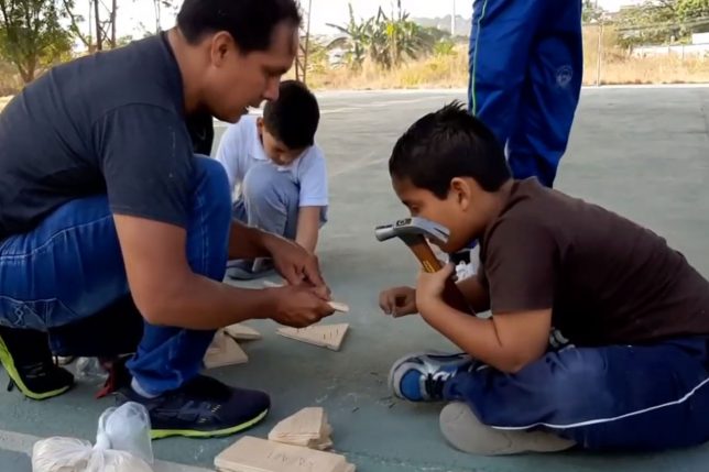 César Pilay, en la “Construcción, manejo y buen uso de los zancos”