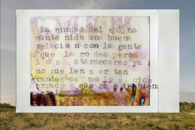 Agrega que dos viajes tienen lugar en su proyecto. Uno virtual, mediante el Streetview de Google Maps hacia la Costa ecuatoriana, “una navegación por carreteras en búsqueda de paisajes contemporáneos donde enfrento el lugar virtual a mi presencia física en una sola imagen. El segundo viaje es interior, con dos rutas: una exploración de mi hogar como imposibilidad de exploración de lo sensible geográfico y un recorrido por mis afectos a través de la poesía predictiva o poesía involuntaria, que surge de la interacción con el texto predictivo de mi teléfono celular. Estos poemas predictivos son inscritos en un soporte fotográfico creando una suerte de paisaje escrito-visual que explora los límites de la representación del paisaje y el autorretrato en la fotografía”.