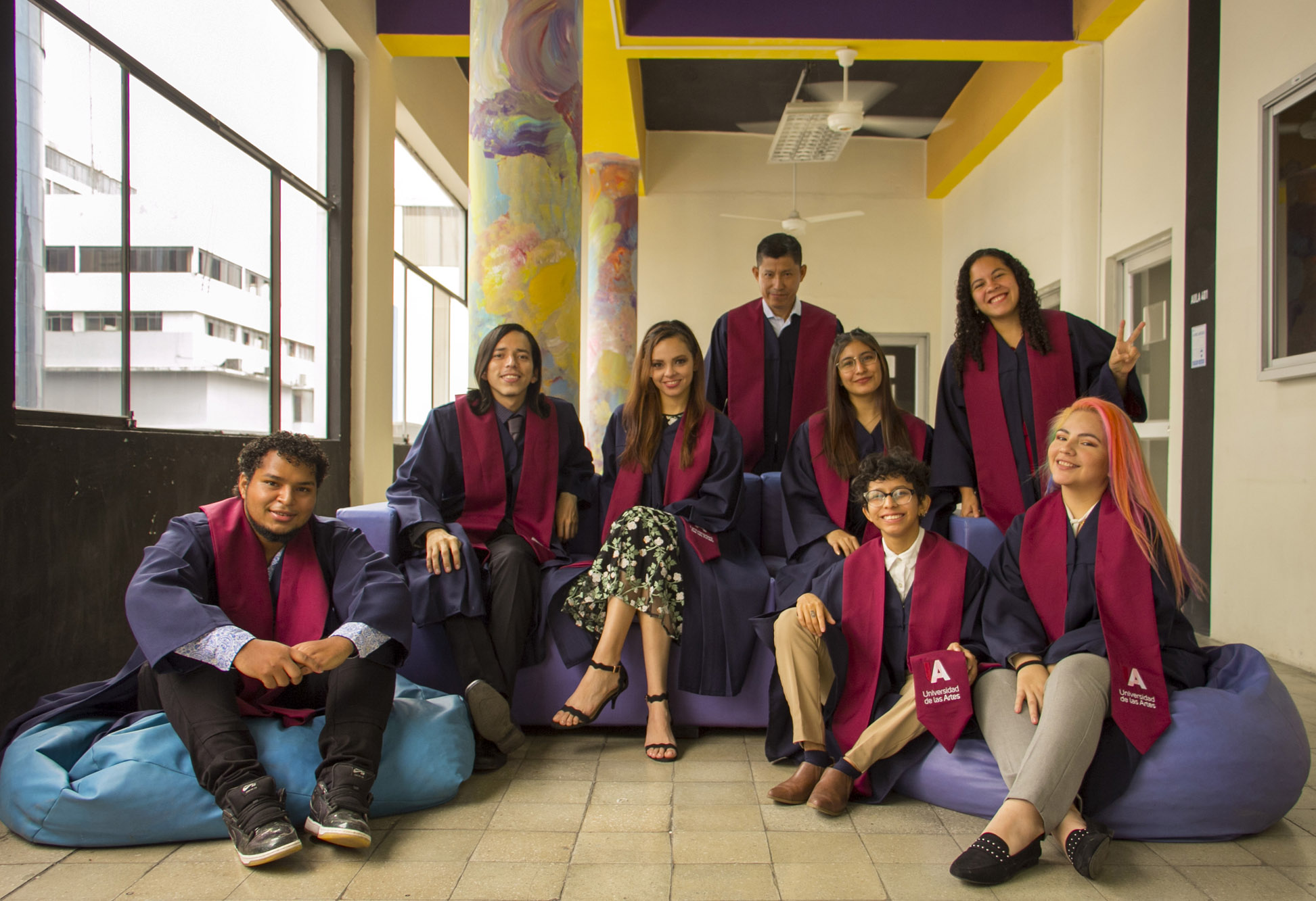 Una esmerada secuencia de videos de trabajos realizados por los alumnos, de actividades gestadas por la UArtes e incluso de producciones y personajes inspiradores, se fueron alternando con imágenes grupales de los graduados de las carreras de Creación Teatral, de la Escuela de Artes Escénicas; de Producción Musical y de Artes Musicales, de la Escuela de Artes Sonoras; de Literatura, de Cine, de Artes Visuales. Creativas sesiones de fotos en las que también participaron los posgradistas y los licenciados por Validación de Trayectoria.