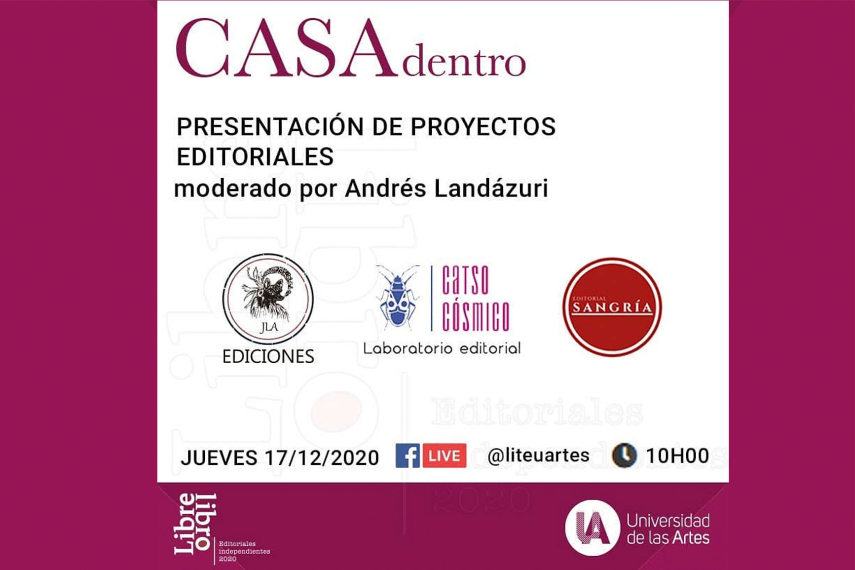 El primer conversatorio al respecto tendrá lugar el jueves 17 de diciembre de 2020, desde las 10:00 hasta las 11:30. Bajo la moderación del docente Andrés Landázuri, en esa cita se hablará de Catso Cósmico, Editorial Sangría y JLA Ediciones. Participarán los estudiantes directores, quienes enfocarán su presentación en la gestión de sus proyectos, así como la temática y el objetivo de los mismos, los enfoques de sus publicaciones y próximos lanzamientos.