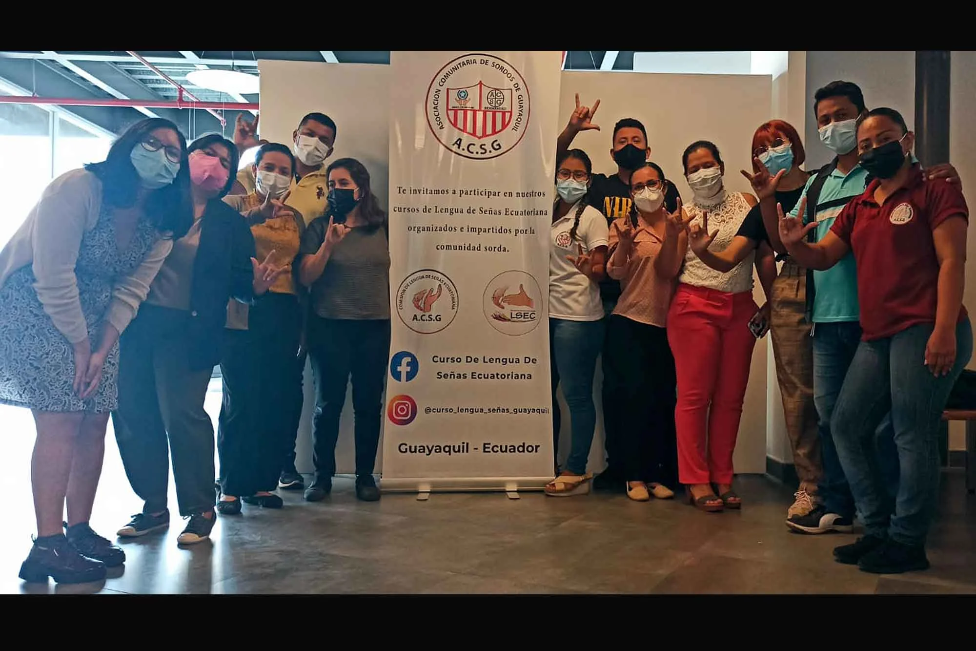 La capacitación se gestionó con la Dirección de Inclusión Social del Municipio de Guayaquil y la Asociación Comunitaria de Sordos del Ecuador se encargó de dictarlo. Se lo dirigió al personal administrativo y docente de la UArtes, su desarrollo fue concebido de manera dinámica y como contenido se estableció el vocabulario y las palabras de uso frecuente en nuestro ámbito laboral.