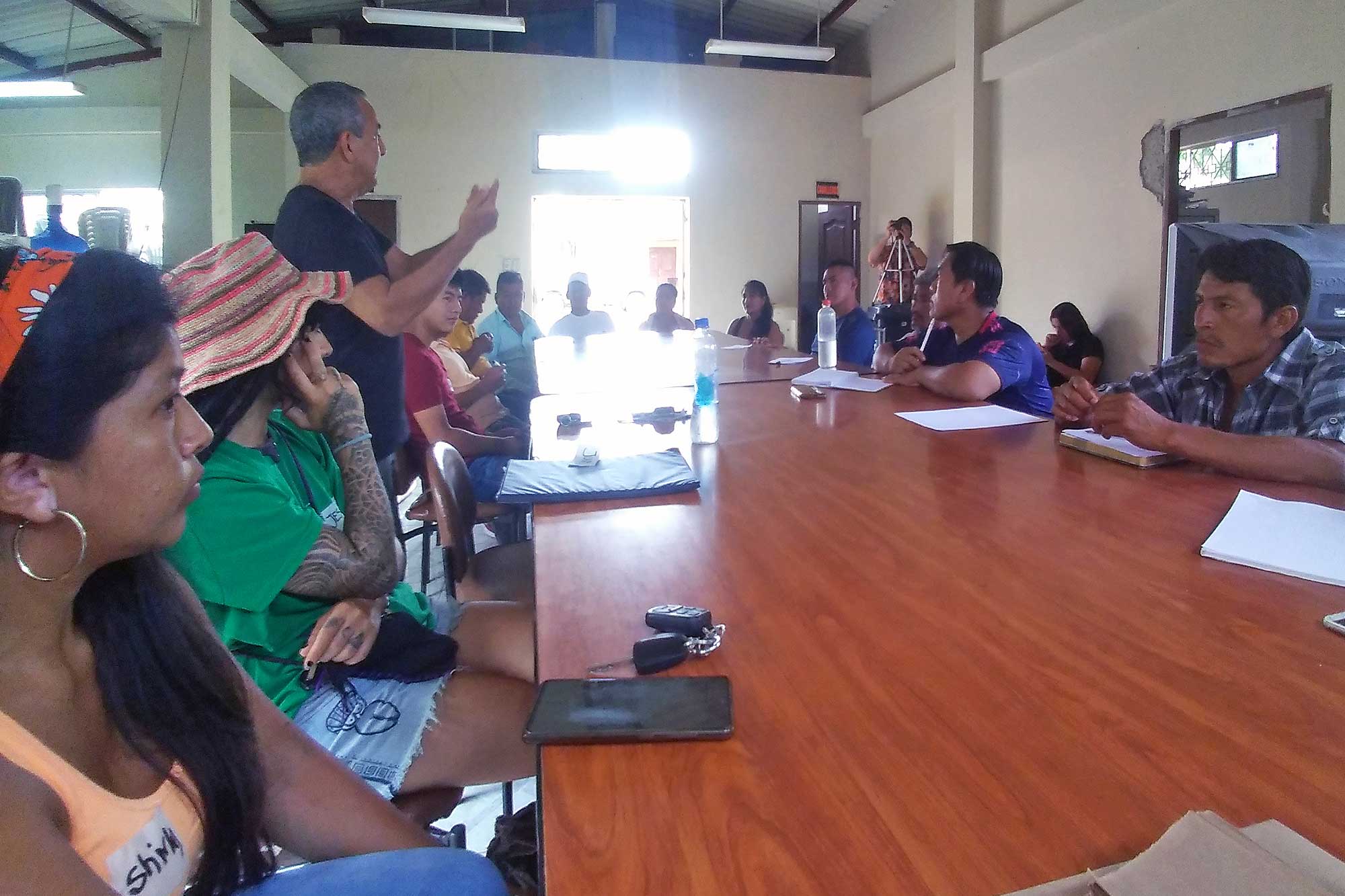Texto y fotos: Patricio Sánchez, funcionario de la Dirección de Vinculación con la Sociedad. En la foto principal, taller desarrollado en la Comuna Loma Alta. En la segunda imagen, entrevista con el vicepresidente de la Comuna de Olón.