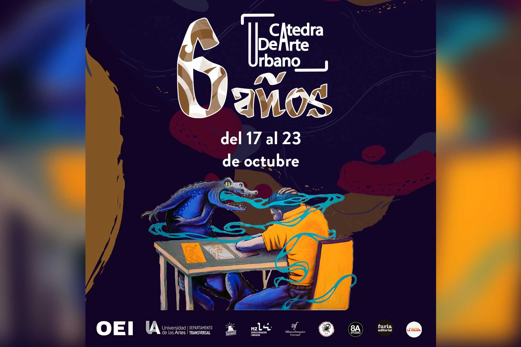 Cabe indicar que para celebrar los 6 años de la cátedra de Arte Urbano se ha programado una abultada agenda de actividades. Como se indica al inicio de esta nota, arrancará el lunes 17 de octubre con las intervenciones de paredes del Malakita, ubicado en el Pasaje Illingworth, en el campus centro de la UArtes y las Vitrinas del Centro de Producción e Innovación MZ14.