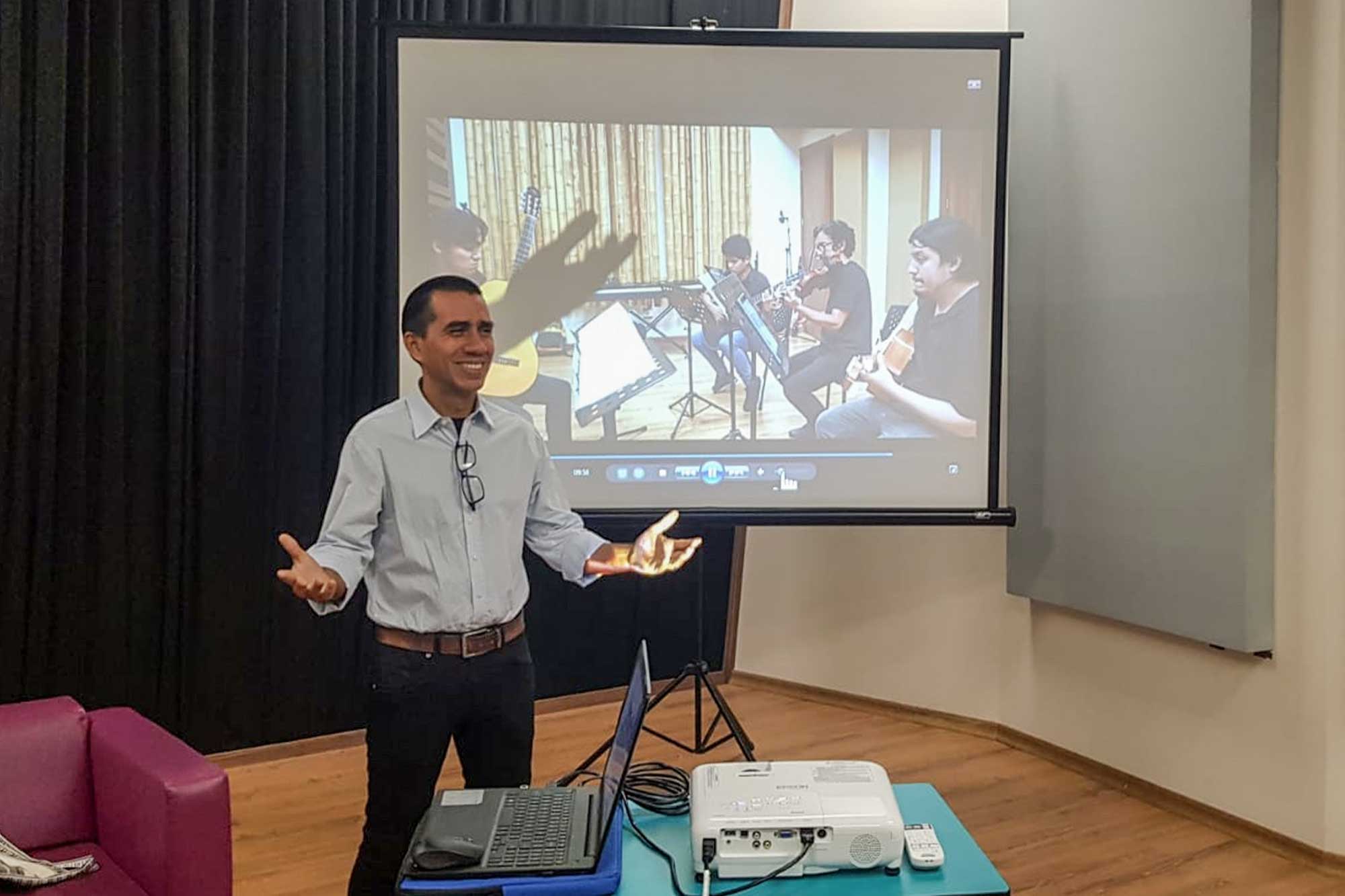 El coordinador de la maestría, doctor Rafael Guzmán, señaló que se expusieron las obras audiovisuales de ocho magísteres –de un total de 21 graduados–, a modo de presentar los lenguajes musicales de las nuevas generaciones de compositores y compositoras.