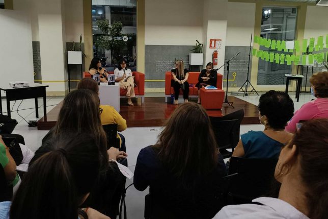 El rector de la Universidad de las Artes, doctor William Herrera, intervino en la bienvenida a la audiencia, a la escritora y sus panelistas. La poeta, narradora y pianista Sonia Manzano y las estudiantes de la Escuela de Literatura Marián Ibarra y Geovanna Salazar, quienes hicieron la presentación de la obra (Ibarra) y una performance de casos de femicidios y transfemicidos.