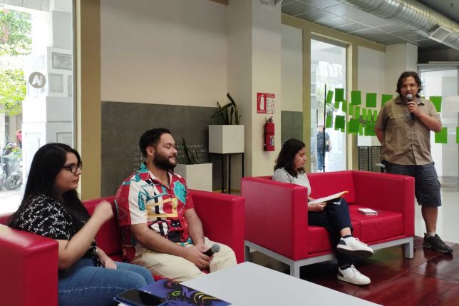 La presentación de los proyectos de titulación de la Escuela de Literatura tuvo dos momentos de diálogo. En el primero intervinieron los estudiantes Diana Sánchez, Rogger Cedeño y Marietta Altamirano, con la moderación del docente Andrés Landázuri. En el segundo participaron Paula Barona, Antonio Acosta y Alina Manotoa, con el también catedrático UArtes Roberto Ramírez.