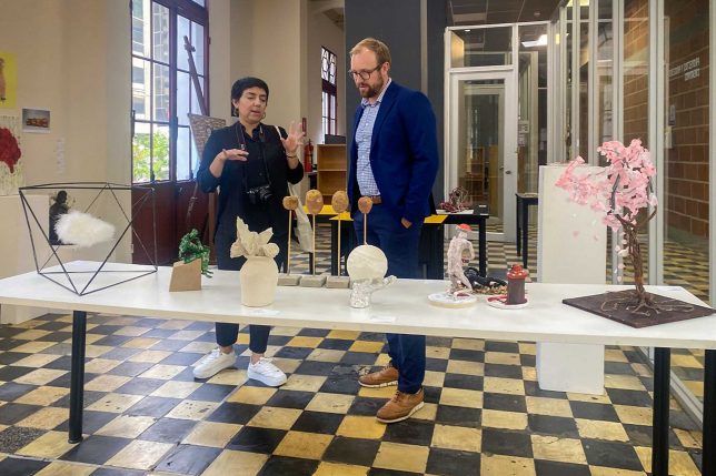 De la materia Introducción a la Creación Artística, a cargo de la docente Vanessa Guamán, en la muestra colectiva de Nivelación se presentó la instalación pictórica “Procedimiento de la vida”, de la autoría de Mithon Saltos, Doménica Carrión, Bryan Villón y Paola Rumiguano; y, la escultura “Yo, tú, ellos”, de Josmara Escala, Luiggi Riveros y Marcelo Herrera.