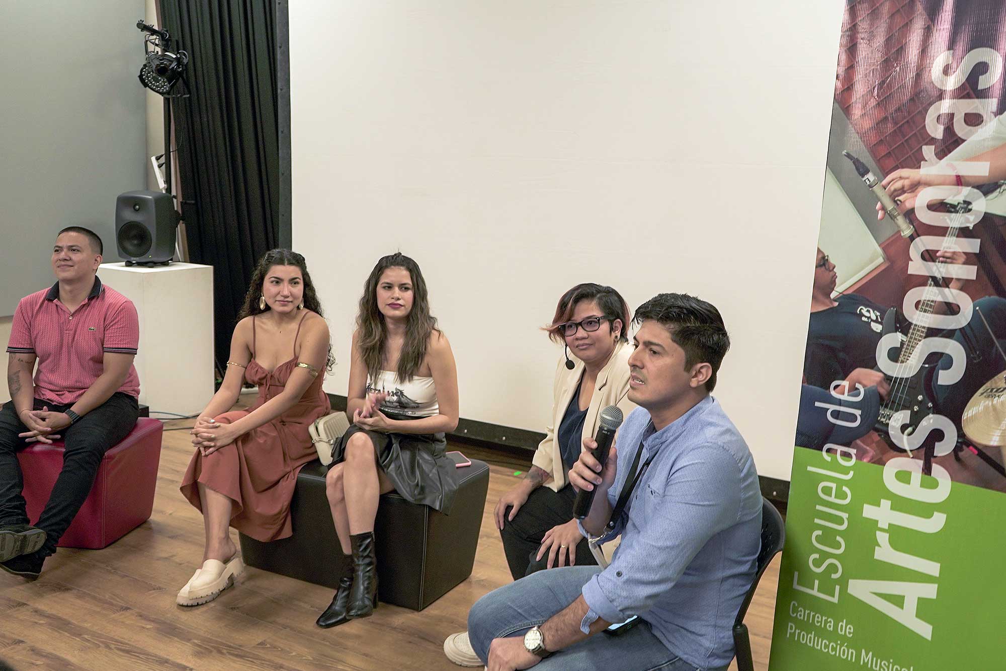 La sala está llena, no se permite el ingreso de ningún estudiante más, no hay un solo lugar libre, todos los asientos están ocupados por aquellos con dudas sobre el hoy y muchas más sobre el porvenir. Shalom Mendieta, Bryan Hinostroza, Tábata Alvarado y Juan Martínez, exalumnos de la carrera de Producción Musical y Sonora de la Universidad de las Artes, compartieron con el público sus experiencias, anécdotas y consejos en la charla «El mundo real: Terminé la U ¿Y ahora?”.