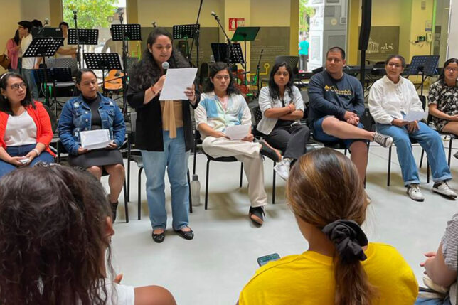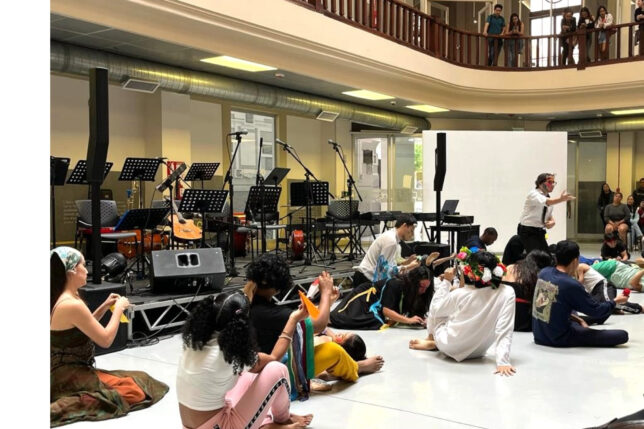 Meining Cheung Ruiz, docente de Producción Musical, mencionó que los espacios son para los alumnos y la comunidad y debemos cuidarlos, así como la ciudad los acoge. Como artistas se puede crear la realidad para organizarnos y seguir creando arte, dijo a los presentes, citando, además, a Albert Einstein “todos los seres humanos son artistas, diseñadores, escritores, compositores y dentro de lo suyo y cada idea nueva, si se la desarrolla y ejecuta bien puede llegar a ser maravillosa.”