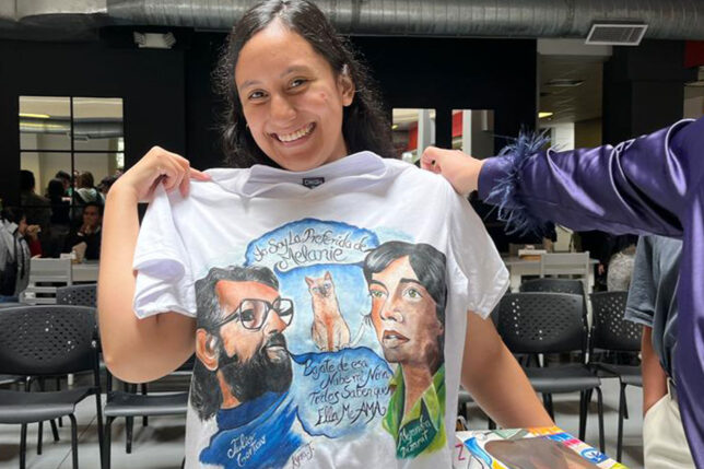 Con la Escuela de Literatura hubo lectura de poesía inédita, a cargo de sus alumnos de Nivelación. El amor, el despertar del cuerpo, los sentidos, la memoria y olvido, la pérdida del ser querido, la llamada de la muerte… constaron entre los temas abordados. Al finalizar, los autores le entregaron a la docente Melanie Moreira Abad una bitácora de los momentos compartidos en clases y una camiseta con los rostros de Julio Cortázar y Alejandra Pizarnik.