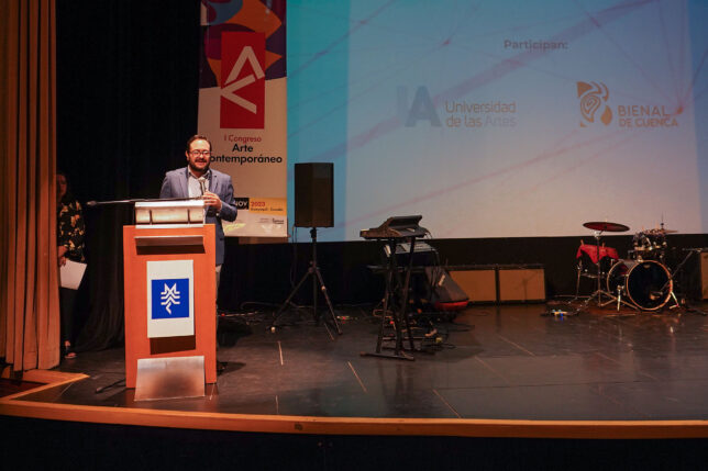 Seguidamente, el congreso dio inicio a las ponencias. En el primer panel, que abordó las “Epistemologías y nuevas perspectivas teóricas del arte contemporáneo”, intervino Lupe Álvarez con Hernán Pacurucu, curador de la Bienal de Cuenca. La docente UArtes hizo referencias a explorar la construcción del conocimiento artístico en contextos cambiantes, de cuestionar perspectivas tradicionales y de fomentar enfoques multidisciplinarios.