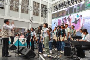 La intervención de Icaza fue una introducción a la presentación del Ensamble de Pop Rock del cantón Daule, el cual, conformado por 29 niños y niñas, interpretó la canción “Sin Miedo”, de la autoría de Álex Emilio Hincapié, uno de los graduados que participa con tallerista e instructor en el proyecto Escuelas de las Artes del Guayas, presente también en los cantones de Nobol, Marcelino Maridueña, Simón Bolívar, Durán, Milagro y Guayaquil.