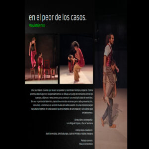 La dirección y coreografía de “El peor de los casos” estuvieron a cargo de Luis Miguel Cajiao y Oscar Santana y como intérpretes-creadores intervinieron Abel Bermúdez, Emilia Burgos, Gabriel Mieles y Odalys Vergara. El paisaje sonoro lo realizó Mauricio Bombón.