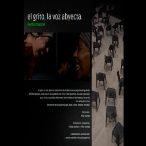 Con la colaboración audiovisual de Dome Ordóñez y Antonio Zamora, “El grito, la voz abyecta” consistió en presentar y compartir algunos descubrimientos y hallazgos logrados en este tiempo de lecturas, reflexiones y experimentaciones junto a Paola Zamora, anota Aranda. Agrega que hicieron también un pequeño laboratorio donde se convocó a otros estudiantes y miembros de la comunidad interesados en indagar sobre su voz. “Es un ejercicio, una pequeña composición para la escena de aquellas cosas que fueron experimentando a partir de la pregunta: qué me deja sin voz, y a partir de la afirmación: estoy sin voz”.