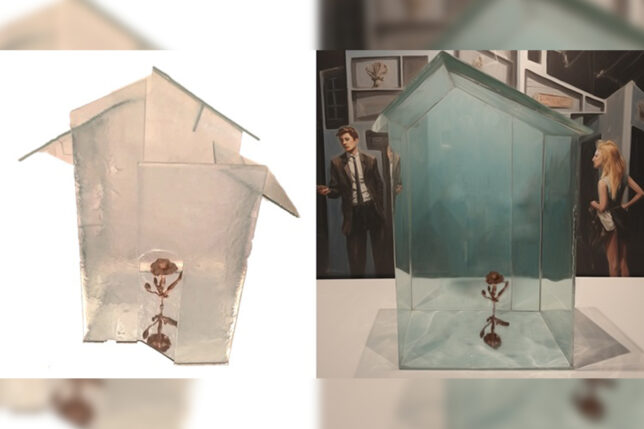 Continúan cuatro instalaciones: una escultura fundida en cobre resguardada en una coraza de vidrio, otra fundida en cera de abeja y cubierta en pan de oro que levita sobre su propio eje, una pieza que proyecta relieves traslúcidos sobre la pared a través de un proyector de slides modificado y una gota de agua apresada en una estructura de vidrio.