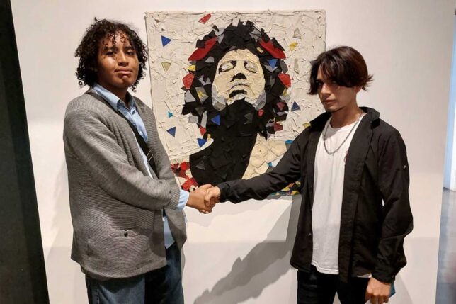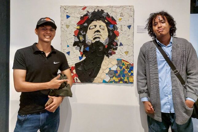 También tiene dos trabajos. Uno al que tituló “Sabiduría ancestral” y que desarrolló junto a su amigo Carlos Ayala con retazos de tela, pintura acrílica y plastilina sobre lienzo. “Hace referencia a la espiritualidad universal con la rica herencia cultural afro, con pinceladas que trascienden fronteras. La pieza abraza la diversidad espiritual de la humanidad, confeccionada con una variedad de materiales simbólicos, como tejidos tradicionales y elementos con significados. Se convierte en un tapiz visual que celebra la conexión espiritual entre las culturas afro y el cosmos, transmitiendo un mensaje de unidad y trascendencia”, dijo. Lo trabajó en la materia Operación Artística, a cargo de la docente Tamia Sánchez.