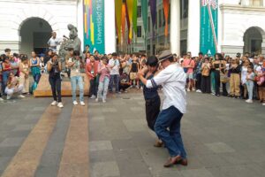 Las actividades que para tres días programó la carrera de Danza fueron el resultado de un trabajo conjunto de profesores, estudiantes y equipo de producción, comentó la docente Vanessa Pérez. A cargo del “Flashmob” estuvieron Aglae y Gloria Febres-Cordero; en la producción, Elizabeth Medina; en la difusión, Sofía Mera; en la parte técnica, Joselyn Sánchez y Remigio Vásconez, docentes de Laboratorio. Fue una completa colaboración de todos, anotó.
