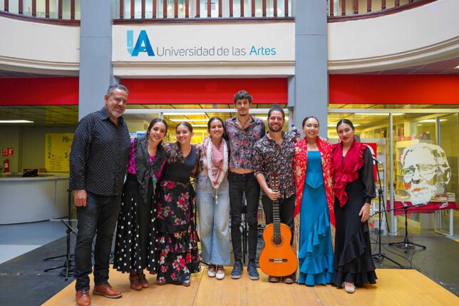 En la actividad inaugural del encuentro musical y artístico participaron las bailaoras María Emilia Paredes, María de los Ángeles Vera, Francesca Pinoargotti y Antonia Castro, acompañadas por GYE Flamenca, agrupación integrada por Camila Valdiviezo, también bailaora, y estudiante de la Escuela de Literatura UArtes; el docente de la EAS Santiago Cárdenas, guitarrista flamenco; Xavier Domínguez, palmas y jaleo; y Alexis, “El Mendirí”, cantaor flamenco.