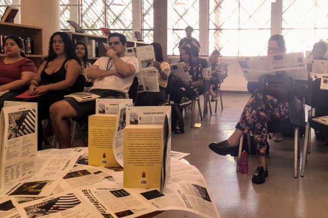 Salgado comenta que UArtes Ediciones le indicó tener dos ítems para hacer impresos con el formato de “Tangente”, proponiéndoselo. Anota que llevó la propuesta a sus alumnos del taller Letras del día, el cual justamente aborda la realización de un periódico cultural. Era el primer semestre en que daba el taller (el 2024-A), así es que “cayó de perlas”, confiesa.