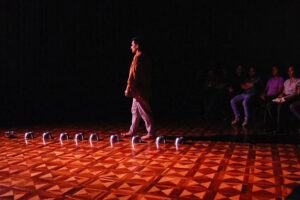 La obra “Investigaciones inconclusas” fue creada a partir de unas cajas creativas, una estrategia que Santana viene desarrollando con los chicos del Laboratorio de Creación de séptimo semestre, que es el último antes de que pasen a creación de unidad y titulación. El docente indica que es a partir de los materiales presentados que se empiezan a crear frases, relaciones y estructuras coreográficas.