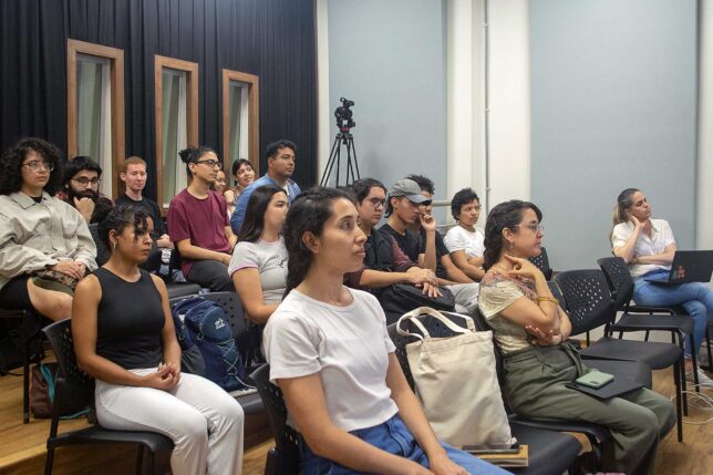 La actividad inició el jueves 12, a las 10:00, con el taller “Ciertas historias que ignoramos: procesos de creación cinematográfica dentro de centros penitenciarios en Guayaquil, Ecuador”, dictado por Priscilla Aguirre, docente de la Escuela de Cine y directora del proyecto de investigación “Atlas: laboratorio de creación e investigación cinematográfica”.