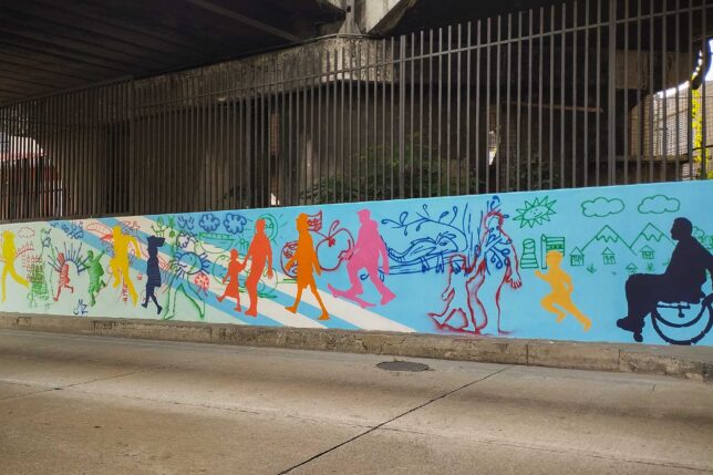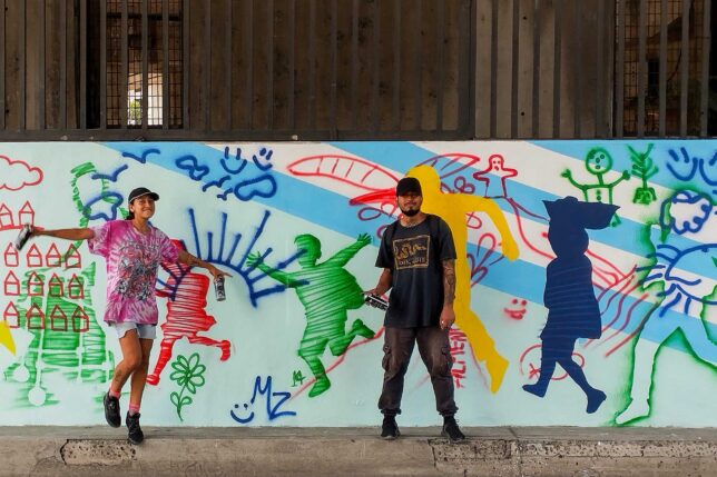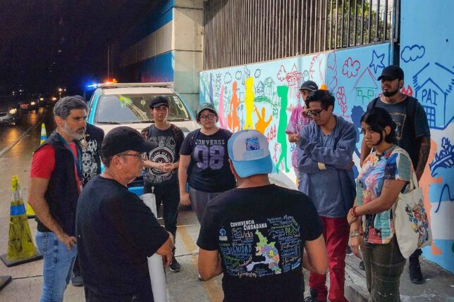 Convocado por el docente Serrano para participar en la intervención del mural, William Mena, estudiante de la Escuela de Artes Visuales que lidera el Club de Arte Urbano y Muralismo conformado en la UArtes, celebró que los mismos habitantes del sector hayan aportado al diseño de la obra. Es importante, dijo, que expresen qué y cómo quieren ver su entorno.