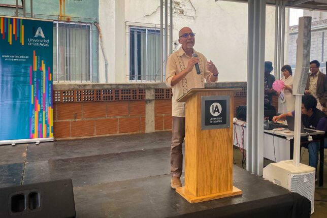 En su intervención, y tras agradecer a las entidades que aceptaron la invitación de participar en la feria y abrir sus espacios, el doctor William Herrera, rector de la Universidad de las Artes, ponderó las Prácticas PreProfesionales en entidades externas y anotó su importancia en el ámbito estratégico y para el proceso formativo del alumnado.