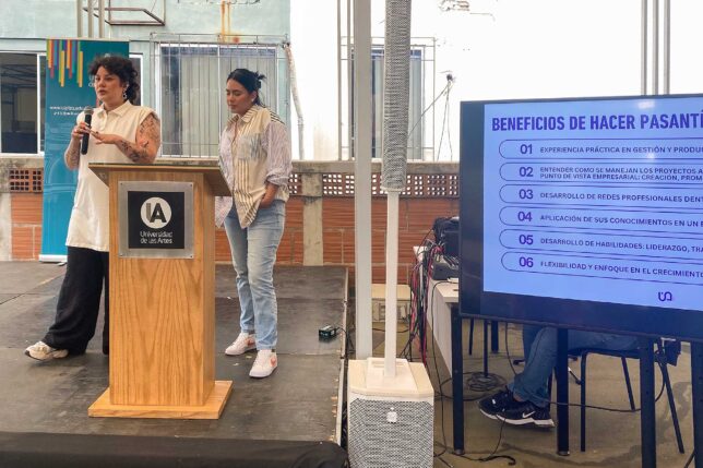 Janina Suárez, jefa de Prácticas PreProfesionales UArtes, inició la jornada ferial presentando a los docentes coordinadores de PPP de las diferentes carreras de nuestra institución, animando a los estudiantes a que acudan a ellos cuando tengan inquietudes entorno a las horas que deben realizar tanto de PPP laborales, como de vinculación con la sociedad.