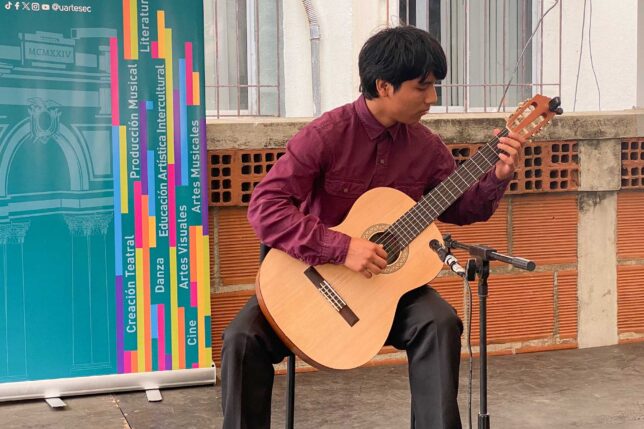 Seguidamente, Daniel Morales, estudiante de la Escuela de Artes Visuales, compartió su talento para la interpretación y la composición musical brindando a la audiencia los temas “Rayo de luz”, un inédito que estará próximamente en plataformas digitales, y “Vámonos de viaje”, de los argentinos Bandalos chinos.