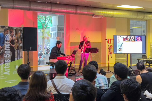 Las presentaciones de los docentes Miguel Gallardo, en el teclado, y Javier Ocampo, en el saxofón, así como del Coro Callas que dirige Enrique Silva Gil, todos docentes UArtes, dieron marco a la inauguración este martes 29 de octubre de la octava edición de “Piano ma non solo”, evento hito de la Escuela de Artes Sonoras. En su intervención, el rector William Herrera reiteró nuestro compromiso con el acceso a las artes.