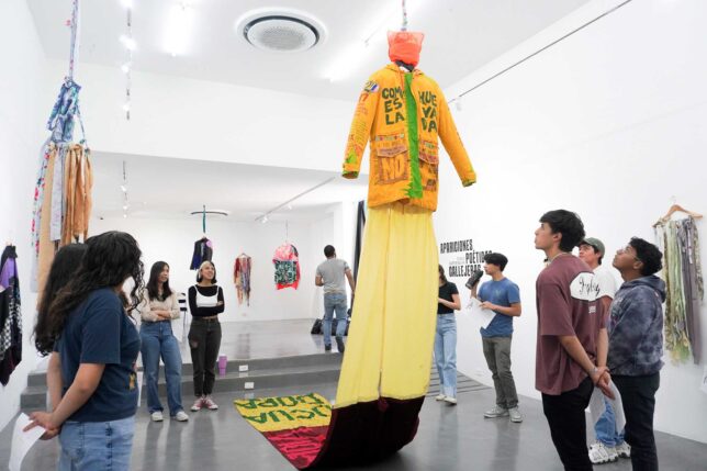 El tejido, cargado de historias y manos que luchan, se convierte en un grito hecho tramas, en una aparición fantasmagórica que sacude. Q Galería (Quito) da cuenta así de la muestra “Apariciones poéticas callejeras” de la artista y alumnus Diana Gardeneira, que inauguró el 17 de octubre y mantendrá hasta el 8 de noviembre. La propuesta fue parte también de la exposición “Prompt me:/ si lo imaginas” realizada en el MZ14, en el marco de la maestría de Artes Visuales y Nuevos Medios.
