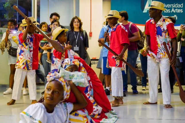 Los grupos de música y baile afroecuatorianos de la Fundación Karibu estaban listos para presentar lo que el líder comunitario Carlos Valencia señaló como “parte de los valores de nuestra cultura”, resaltando la familiaridad entre la UArtes y las comunidades que habitan. “Los artistas docentes y alumnos siempre nos visitan y más allá de ir a enseñarnos generan un aprendizaje mutuo basado en la experiencia, la práctica más allá de la teoría, el poder convivir con estas comunidades y aprender de la cotidianidad creo que es esencial y hacen más humanos a los humanos”.