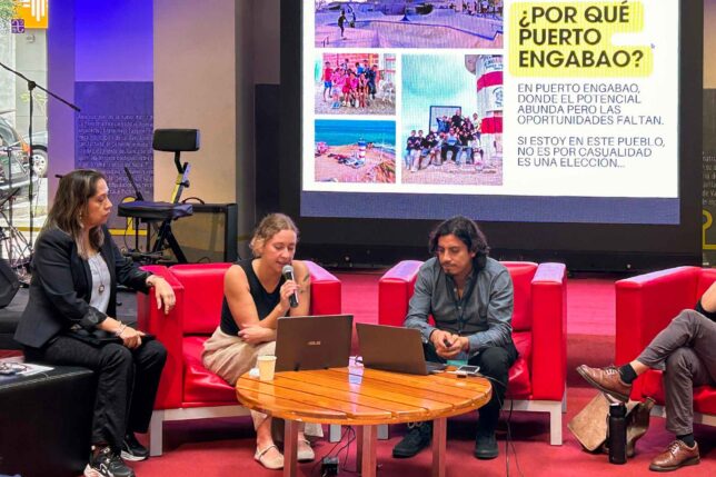 Sucedió este miércoles 20 de noviembre en la Plaza Pública del MZ14 Centro de Producción e Innovación, donde intervinieron como ponentes el docente Byron Cevallos, director del proyecto; Darío Jiménez, también de la UArtes y participante de la propuesta; y Guillemette Birkui, de la Fundación La Linterna, una organización no gubernamental que genera talleres de artes y cultura en Engabao, comuna rural perteneciente al cantón Playas donde “Casas Comunitarias” tuvo su inicio.