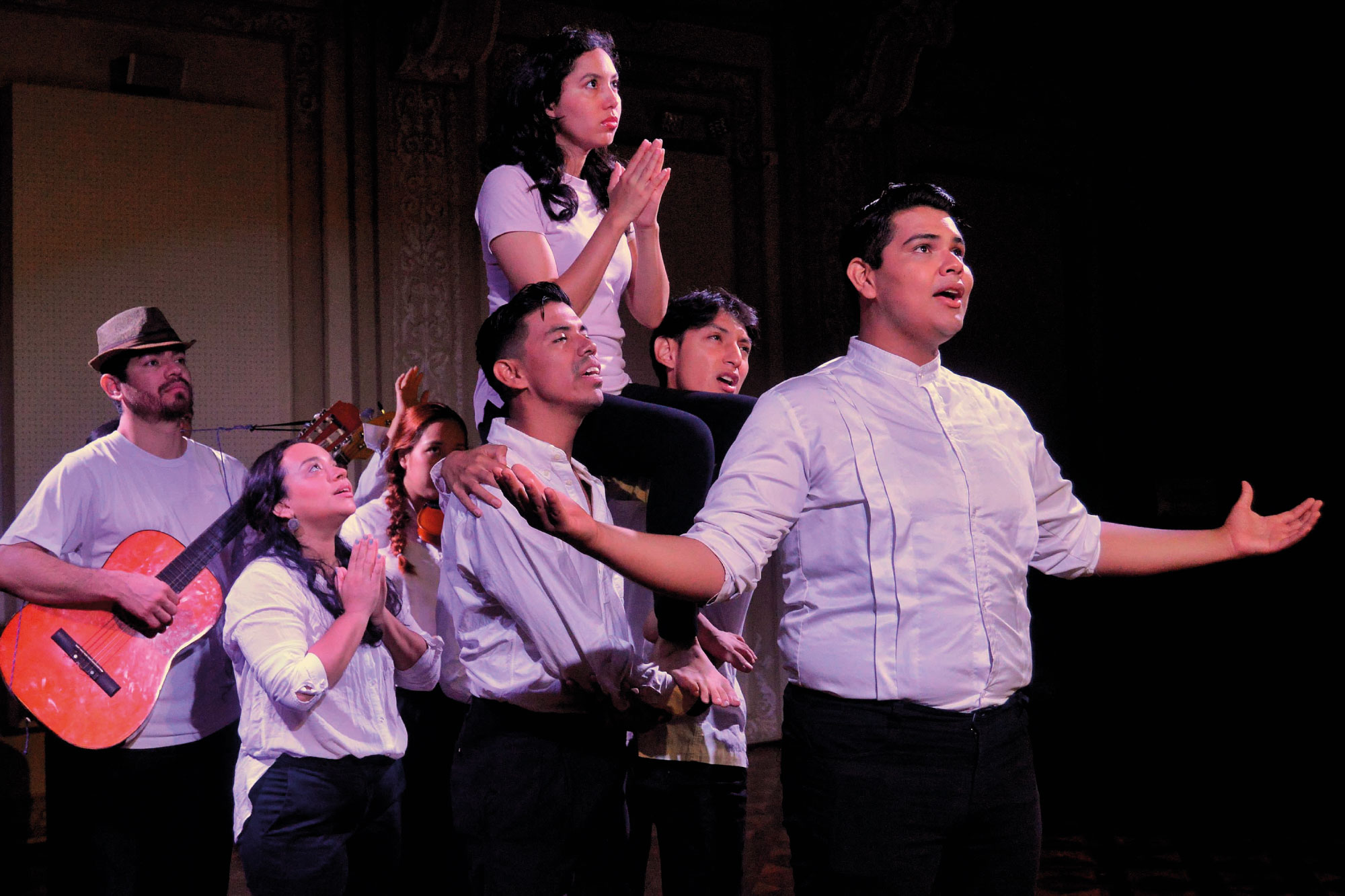 Como creadores y actantes de la escena intervienen María Aspiazu, María de los Ángeles Beltrán, Patricio Borja, Bryan Calderón, Jesús López, Fanny Nieto, Fernando Piguave, Nahomi Ramos, Joseph San Lucas, Miguel Soria, Otty Vera y Sumaya Vera. Colaboran en la musicalización Grecia Albán y Charlie Alban; en el diseño del logo, Adriana Sánchez; en el diseño digital, Eduardo Romero; y en el apoyo en el entrenamiento físico, Tanya Sánchez.
