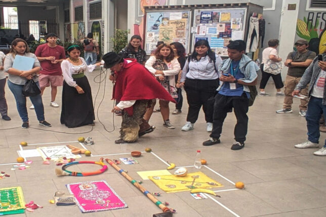 El Inti Raymi o la Fiesta del Sol y la Cosecha, la más importante del Imperio Inca para celebrar el solsticio de invierno, tuvo su conmemoración en la UArtes. La Secretaría de Bienestar Universitario la organizó en el Pasaje Illingworth del antiguo Palacio de la Gobernación, nuestra sede matriz. Tuvo como sacerdote a Oswaldo Huilcapi, danzante ancestral, gestor cultural, folclorista e investigador oriundo de la provincia de Chimborazo. Lo acompañó en el rito la estudiante Sonia Chávez.