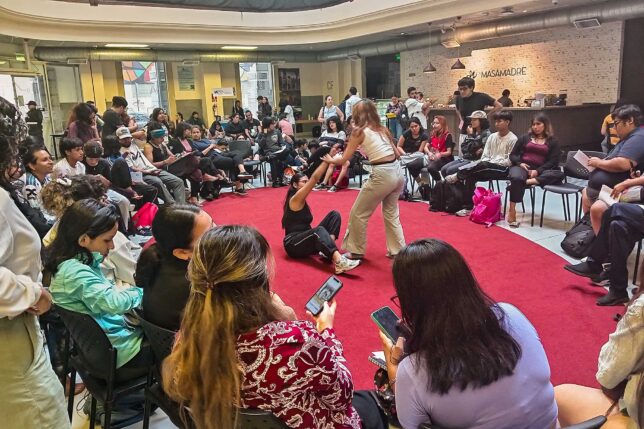 La propuesta resultó un laboratorio en vivo, donde en pareja los participantes –guiados por instrucciones mínimas– exploraron el acto de dirigir y ser dirigidos desde el cuerpo. A través del tacto, el movimiento improvisado y la atención plena, propiciándose una atmósfera de confianza y entrega mutua.