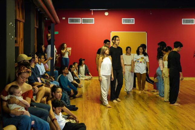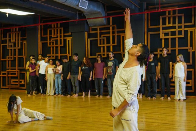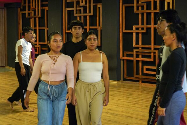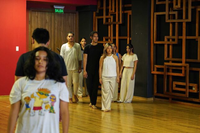 Antes del diálogo con InfoUArtes, Ángelo Bello direccionaba a los participantes del taller en trabajos que partían de lo físico para llegar a la emoción. “En el mundo de las artes escénicas hay muchas rutas para llegar a la creación. En este caso, cogimos esa ruta física, la cual complementamos con una intención y le sumamos una carta, un texto que cada uno hizo, a partir de una experiencia que tuvimos anteriormente de movimiento”.