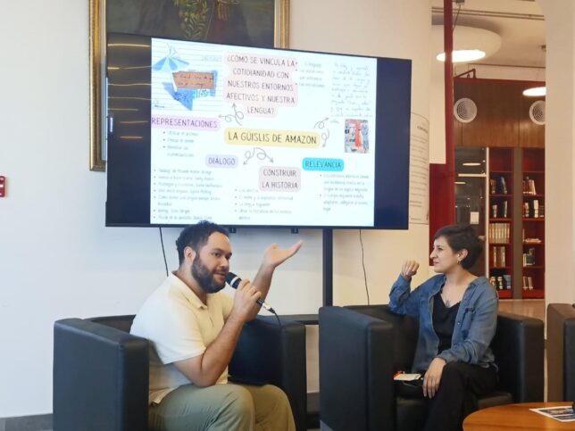 La última intervención fue la de Rogger Cedeño, quien se graduó en el 2022 en la Universidad de las Artes y está próximo a concluir la maestría en Escritura Creativa, también en la UArtes. A su proyecto final lo tituló “La güislis de Amazon, ¿novela o chisme?”. El maestrando introdujo a los presentes en una breve escritura virtual que conlleve a los afectos, los memes, el lenguaje migrante, la literatura en los nuevos medios; una obra que nace bajo las nuevas tendencias tecnologías y jergas de los jóvenes lectores, por lo cual su novela únicamente se transmitirá por la plataforma Telegram y utilizara el tono de sus historias basadas en los tres personajes principales, mezclas de culturas latinas que se desarrollarían bajo el espacio ecuatoriano. Ellos son Rodrigo, Nana y Adrián.