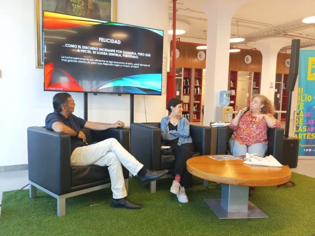Paulina Briones, en sus observaciones, subrayó lo interesante del título: ¿Por qué felicidad? “Desde mi perspectiva de autor quise ponerle felicidad como aquella que se expresa en ciertos momentos y que hay que disfrutarlos porque después desaparecen. No es un estado permanente. En este caso, el enfoque que le he dado es marcar esa lucha que se da y la idea del hombre que busca el éxito porque cree que eso es felicidad. Finalmente, Briones y Natalia García expresaron sus ideas en la construcción de la novela, cuyo mensaje, coincidieron, podría expresarse también de manera ensayística entre lo testimonial o la reflexión.