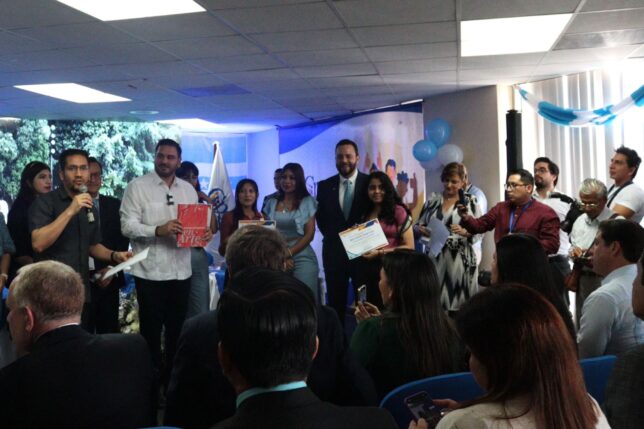 Texto: Carmen Cortez/Dircom con la colaboración de la Dirección de Vinculación con la Sociedad, que también proporcionó las fotografías que acompañan la información. Constan en las imágenes el docente Jorge Tigrero y sus estudiantes en el acto de entrega de reconocimientos.
