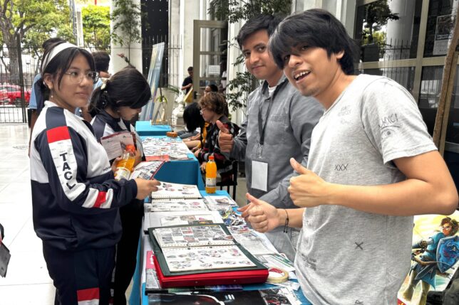 En el mismo espacio, el estudiante Isaac y la funcionaria Andrea Moreira, quien es técnico-docente, explicaron con detenimiento el contenido de la malla de Artes Visuales, como escultura, pintura y grabado, haciendo énfasis, además, en los nuevos medios; esto en el marco de la carrera de posgrado que también es parte de nuestra oferta académica. “Mostramos el proceso para hacer videomapping”, comentó la docente Ruth Cruz, mientras también invitaba a los colegiales a acercarse. Añadió que la demostración los llevaba a concursar en un modelo de figura articulado; los participantes debían hacer un dibujo y el mejor obtenía un premio.