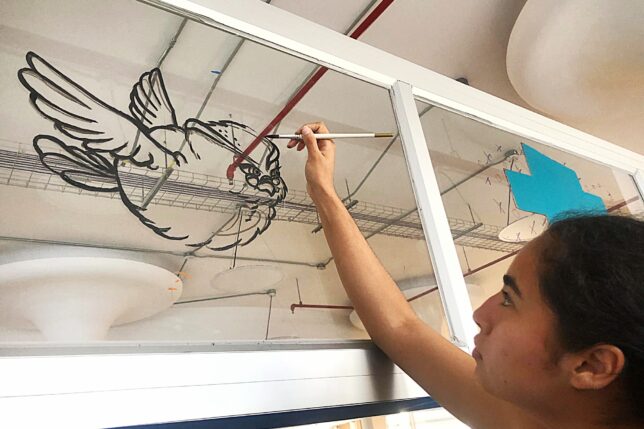 Ahora, en lugar de los tonos grises, blancos y marrones de siempre, en el tercer piso de la Biblioteca de las Artes te recibe una explosión de amarillos y verdes: un pequeño ecosistema de escritura y creatividad. Además, nuestra consejera textual, la simpática búho Tina, te abre las alas y da nueva significación a las frías mamparas.