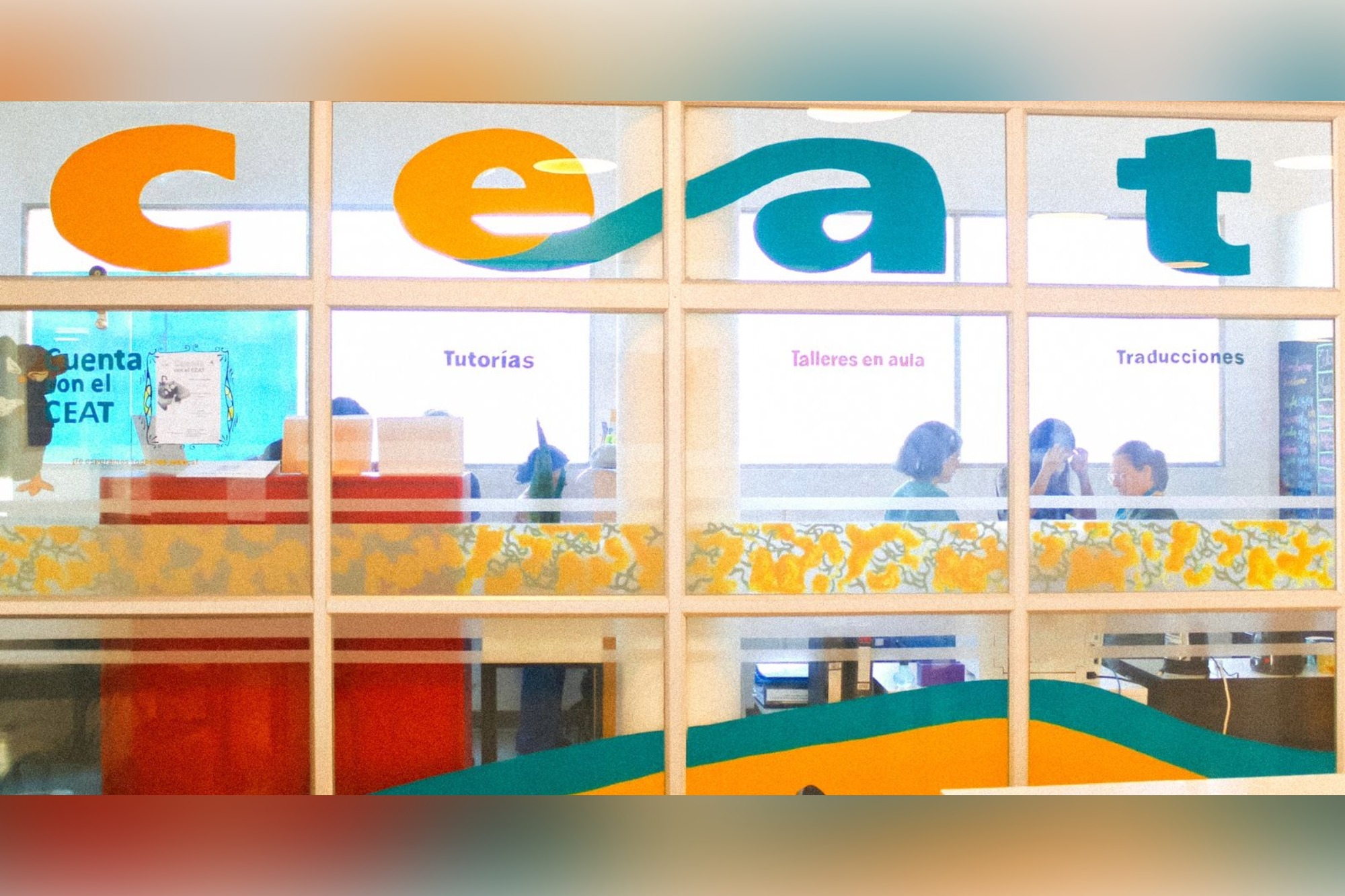 Fue un trabajo extenuante, sobre todo por los tiempos ajustados de cada practicante, pero con dedicación y colaboración logramos enarbolar una bandera colorida que señala el lugar donde la escritura se vuelve amigable. Ahora, la oficina del CEAT —resplandeciente en verdes y amarillos— proyecta con orgullo nuestro nombre.