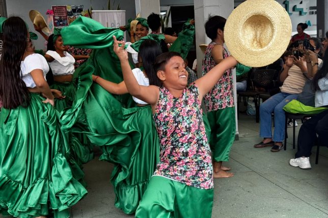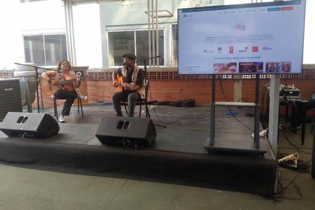 En la feria hubo también presentaciones artísticas. La primera del Centro Artístico Comunitario MalviArtes, fundado y dirigido por el estudiante Joao Robayo, de la carrera de Danza, cuyos integrantes danzaron con música afroesmeraldeña, y luego se presentó en video la canción que la Batucada Popular compuso como homenaje póstumo a Mikel Mesías, uno de sus jóvenes músicos –tenía 13 años–, quien murió a causa de una bala perdida en su barrio de Flor de Bastión. Álex Hincapié, del equipo del proyecto Escuela de las Artes que lleva adelante nuestra institución, destacó la importancia de que una sociedad golpeada como la nuestra responda con amor a través del arte y la creación colectiva.