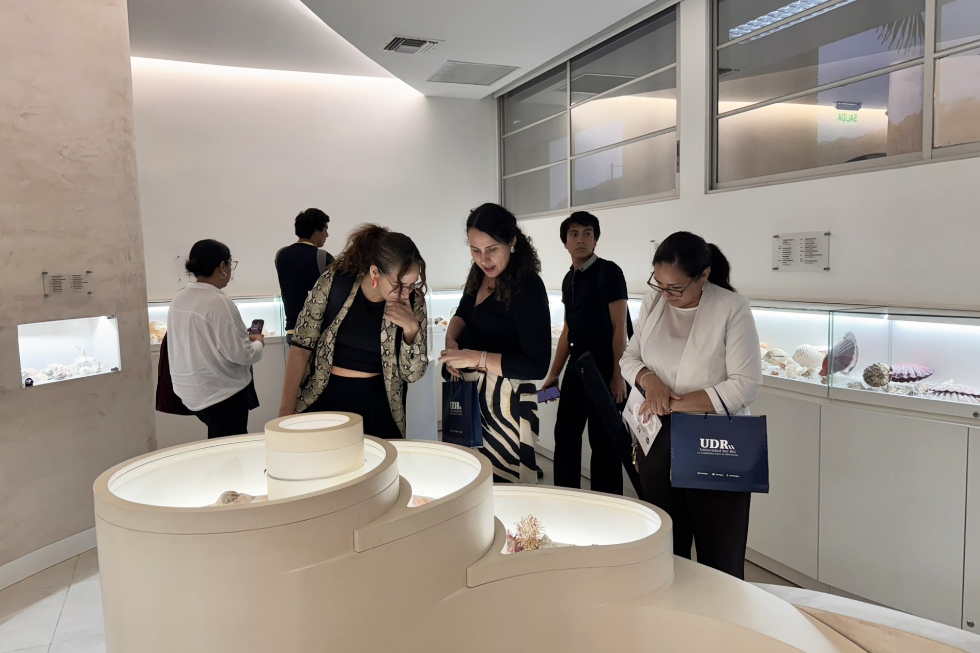 En la UDR, el recorrido por el Museo de Conchas lo guio Patty Hunter, su coordinadora de Vinculación con la Sociedad. En la entrada, un texto de sala da cuenta de su origen: Nuestro expresidente, difunto, Dr. Gustavo Noboa, hizo una colección durante más de 50 años de conchas marinas, no solo de Ecuador, pero especialmente de Ecuador y de otras partes del mundo. Esta colección de alrededor de 3.400 en conchas o moluscos fue entregada a la Universidad del Río en comodato por Industria Pesquera Santa Priscila, que adquirió la colección y para la cual se diseñó y construyó el museo.