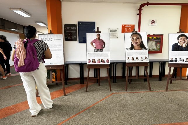 Organizada por estudiantes de la Facultad de Artes de la UCG, la exposición de fotografías «Heridas que buscan sanar» fue concebida como una poderosa expresión de memoria, sensibilidad y resistencia a través del arte. Es el resultado de la sistematización del proyecto Iniciativas Artísticas para la Paz, en el marco del programa Construimos Paz implementado por ONU Mujeres Ecuador, Municipio de Guayaquil y Casa Grande.