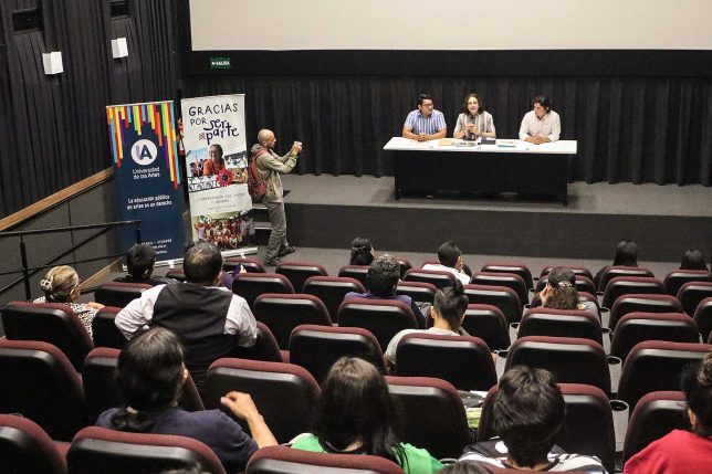 También mostró imágenes de varias películas que aseguró los ayudaron en la producción de “Ser parte”, pues fueron claves para encontrar el camino del documental. Una alemana e inglesa les permitió ambientarse con el audio y el poder del sonido, mientras que el material de archivo de “Mejor no hablar de ciertas cosas”, del cineasta ecuatoriano Javier Andrade, docente UArtes, los encaminó a cómo utilizar las fotografías de todos los años de la fundación.